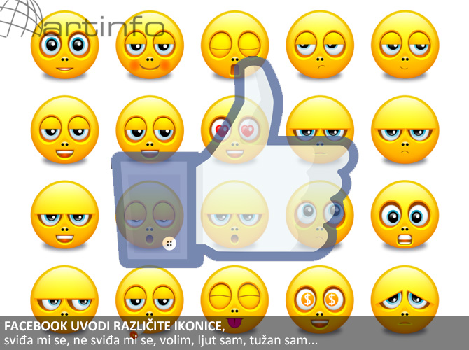 Društvena mreža Facebook uskoro će biti obogaćena novitetom u vidu da će opcija "Like" dobiti nekoliko ikonica kojima će korisnici moći preciznije pokazati reakciju na tuđe poruke, fotografije i druge objavljene sadržaje, prenosi Anadolu Agency (AA).
